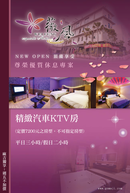 享受 高雄-薇風精品汽車旅館(楠梓館) - 140586 生活折扣樂趣,也更便宜,在GOMAJI夠麻吉團購可立即送貨,好評特蒐,
